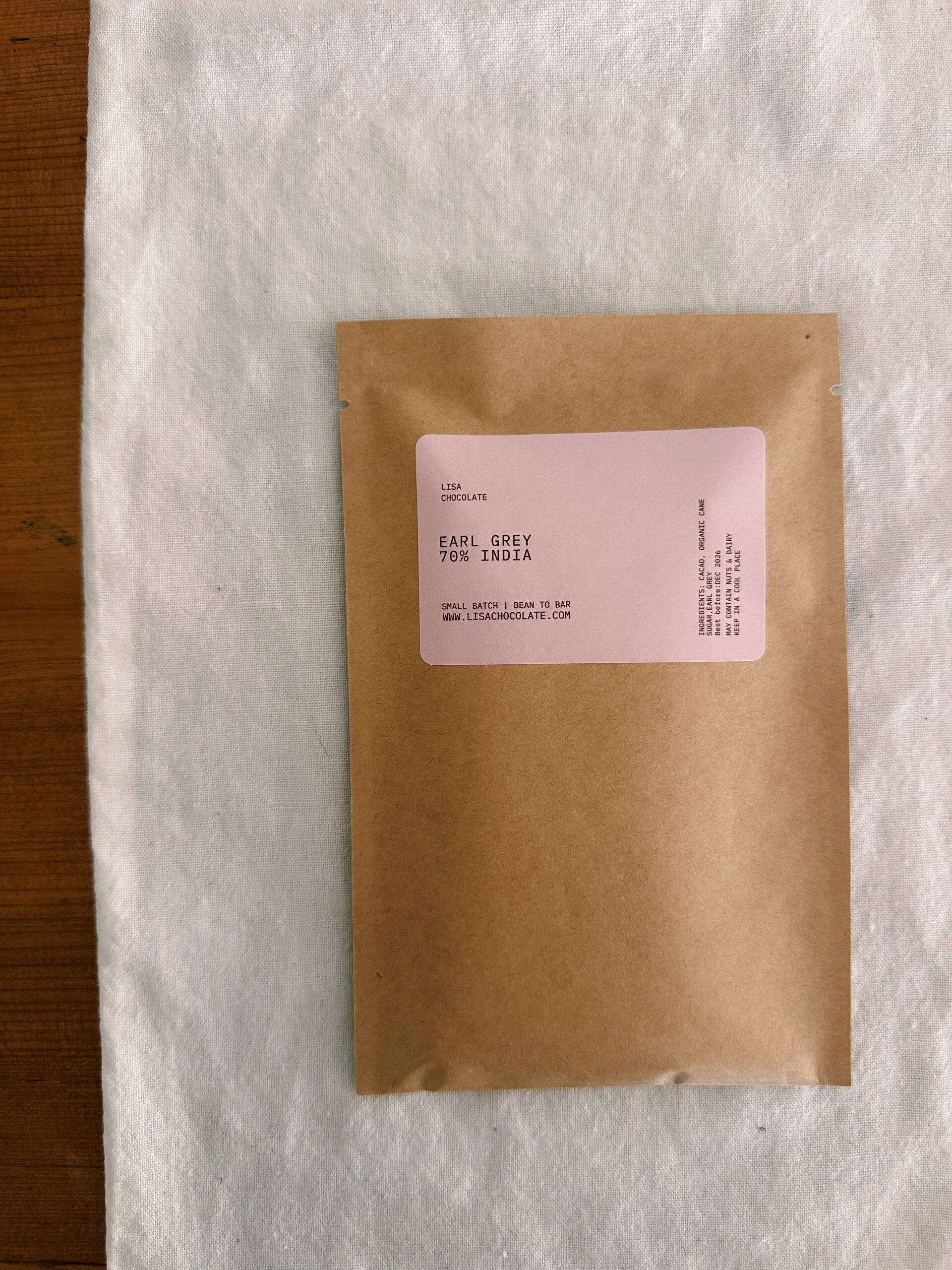Ingredients: Cacao beans, organic cane sugar, Organic Earl Grey tea leaves.